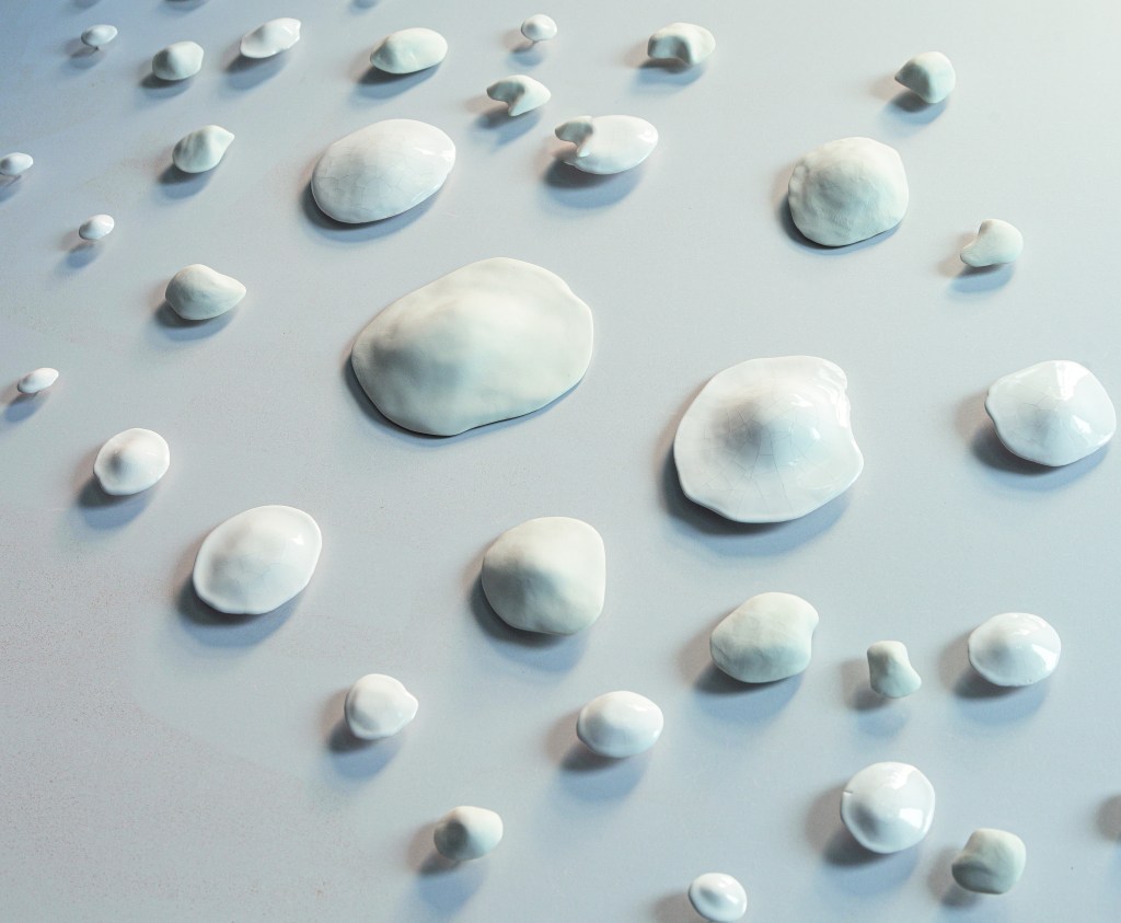 Several large installations, made of glazed Limoges porcelain. Each piece is unique in shape, size structure and appearance.